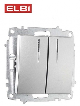 —Выключатель EL-BI ZENA/VEGA механизм 2кл. Led с подсветкой серебро