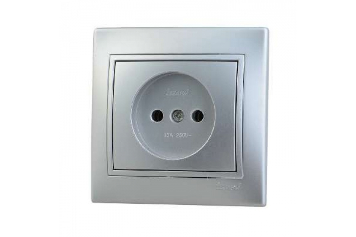 —Розетка LEZARD Mira 1-ая б/з керамика с вставкой металлик серый