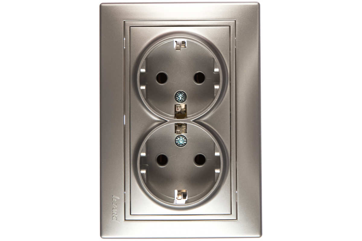Розетка LEZARD Мira 2-ая с/з керамика с вставкой металлик серый 701-1010-127