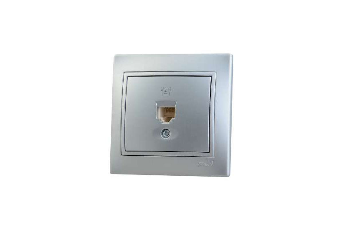 —Розетка LEZARD Mira телефонная евро с вставкой металлик серый
