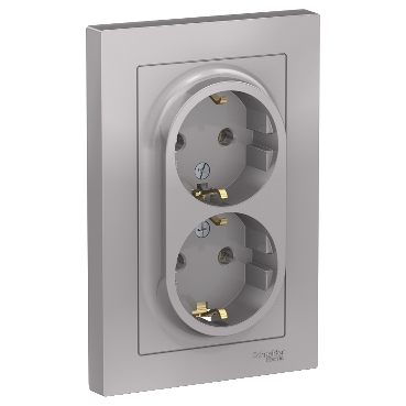 —Розетка ATLASDESIGN 2-я с/з 16А в сборе алюминий