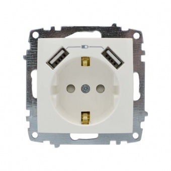 Розетка EL-BI ZENA/VEGA механизм с з/к + 2-ая USB 5V 2,1A + защита от детей белый