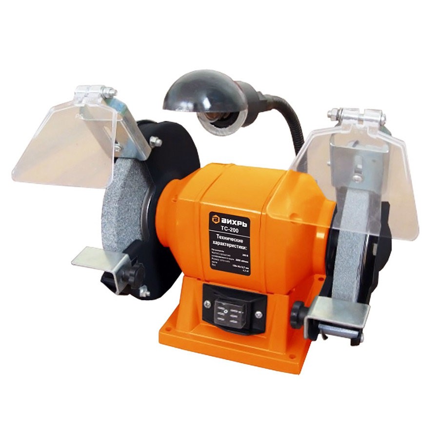 Точильный станок ВИХРЬ ТС-200 - золотая середина точильных станков этого бренда. Вес и габариты также остаются приемлемыми для небольшого рабочего стола, а мощность и размер круга чуть подросли, что позволяет быстрее справиться с теми же задачами. Оснащается регулируемой подсветкой.