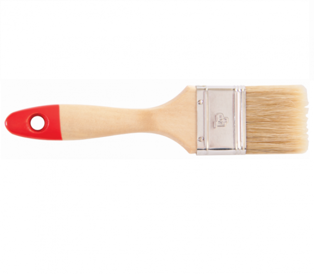 Кисть плоская, натуральная щетина. Применяется для нанесения красок, эмалей, лаков и других лакокрасочных материалов на различные поверхности, наиболее эффективно сочетается с ЛКМ на масляной основе. 100% светлая натуральная щетина более плотной набивки и длины надежно закреплена в металлическом бандаже. Эргономичная утолщенная деревянная рукоятка создает дополнительное удобство при работе