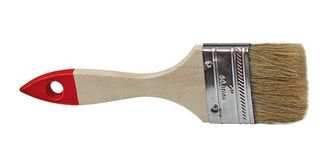 Кисть плоская, натуральная щетина. Применяется для нанесения красок, эмалей, лаков и других лакокрасочных материалов на различные поверхности, наиболее эффективно сочетается с ЛКМ на масляной основе. 100% светлая натуральная щетина более плотной набивки и длины надежно закреплена в металлическом бандаже. Эргономичная утолщенная деревянная рукоятка создает дополнительное удобство при работе