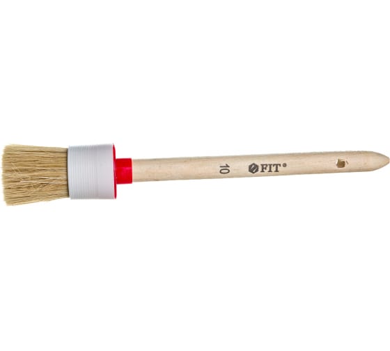 Круглая кисть №10 FIT 01306 - малярный инструмент размером 40 мм предназначен для работ со всеми видами лакокрасочных материалов. Инструмент имеет удобную деревянную ручку и натуральную светлую щетину, которая хорошо впитывает и равномерно распределяет лак или краску по рабочей поверхности.