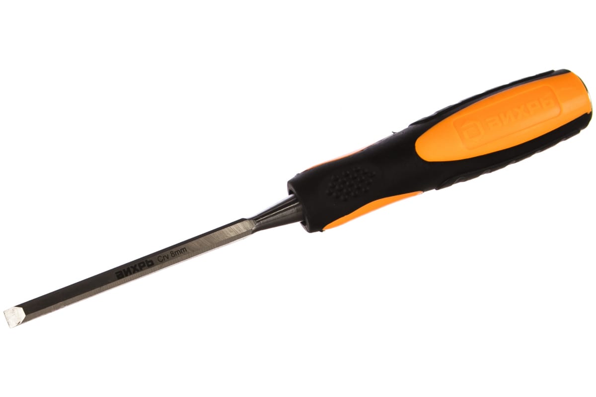 Стамеска-долото 8 мм 2 компонентная усиленная рукоятка CrV Вихрь 73/2/7/1 используется для точных работ с древесиной. Выровнять углы паза или вырезать его можно при помощи этого инструмента.Благодаря двухкомпонентной рукоятке рука не соскальзывает - это обеспечивает высокое качество работы.