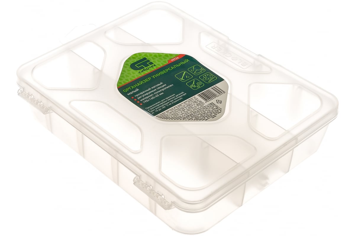 Универсальный малый органайзер 19 х 16 х 4,5 см СИБРТЕХ 90726 удобен для хранения и транспортировки небольших объемов крепежа, шайб, прокладок и иных мелочей.