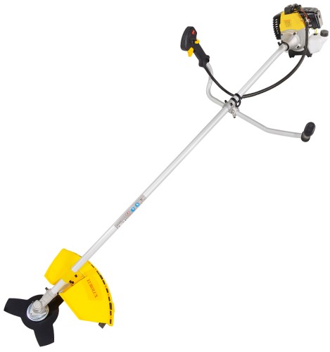 Бензиновый триммер Eurolux TR-1900T применяется для поддержания участка в аккуратном состоянии. С помощью этого бензотриммера скашивается трава и мелкие кустарники. Его небольшой вес (6,3 кг) позволяет легко подровнять газон, избавить от сорняков периметр клумб, грядок и дорожек, скосить траву на участках, куда не добраться с газонокосилкой. Несмотря на то, что Eurolux TR-1900T принадлежит к бюджетному классу, инструмент оснащен двухтактным двигателем с профессиональными параметрами: мощность 2,5 кВт (3,4 л.с.), скорость в 9500 об/мин. Двигатель запускается легко и не перегревается в процессе работы, благодаря воздушному охлаждению. Уровень шума в 96 дБ, не давит на слух. Велосипедная ручка перемещается вдоль цельной штанги, для балансировки бензинового триммера. Удобно расположенные органы управления позволяют быстро остановить мотор и регулировать обороты прямо во время работы. Ремень через плечо позволяет настроить бензотриммер под любой рост и вкупе с системой снижения вибрации облегчает нагрузку на оператора. В комплекте к триммеру идет стандартная катушка лески и трехлепестковый режущий диск. Защитные очки в комплекте не идут. Для приготовления топливной смеси производитель рекомендует использовать фирменное полусинтетическое моторное масло для двухтактных двигателей «HUTER 2T».