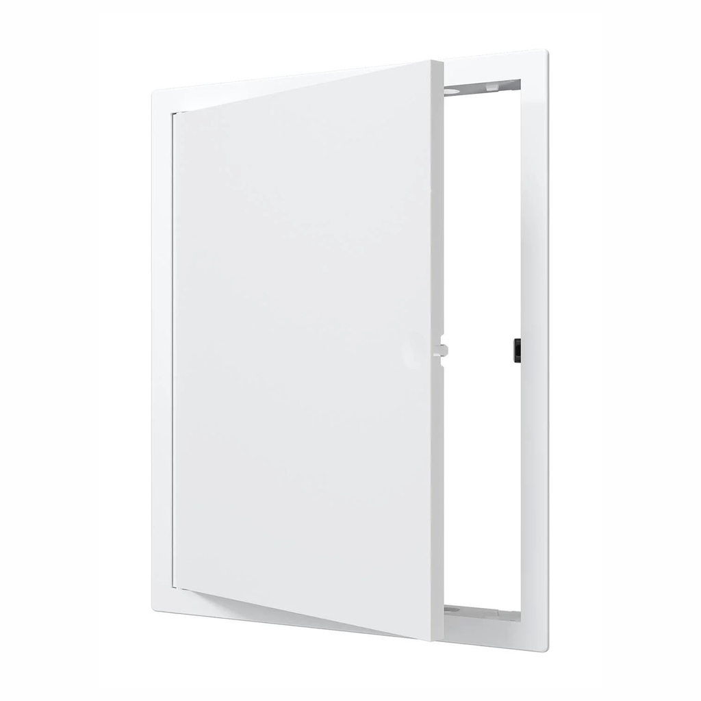 Благодаря встроенному механизму люк открывается и закрывается легким надавливанием на углубление в дверце. Замок выдерживает до 30000 нажатий, эксплуатируется при температуре от - 10 до + 50 ℃. Нажимной замок фиксирует дверцу, не позволяя ей самопроизвольно открываться, за счет чего люк устанавливается не только в стену, но и в потолок.