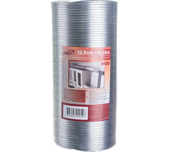 оздуховод гибкий ERA 12,5ВА предназначен для приточных и вытяжных систем вентиляции и кондиционирования. Представляет собой легкую и эластичную гофрированную трубу из алюминиевой фольги.