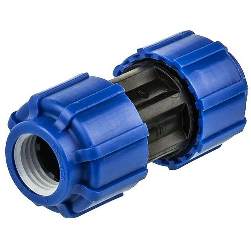 Компрессионная муфта - применяется при необходимости соединить две части трубопровода и может быть неоднократно демонтирована и смонтирована снова. Муфта производится из полипропилена и состоит из нескольких элементов - зажимной гайки, обжимного кольца (цанги), упорной втулки, уплотнительного кольца и самого корпуса муфты. При закручивании зажимной гайки, цанга (упираясь в упорную втулку, которая в свою очередь прижимает уплотнительное кольцо к корпусу муфты, тем самым создавая герметичное соединения) обжимает трубу, вследствие чего получается соединительный узел способный выдержать постоянное давление в 16 атмосфер (1.6 Мпа, PN16) при диаметрах трубопроводов от 25 до 63 мм, и давление в 10 атмосфер (1.0 Мпа, PN10) при диаметрах от 75 до 110 мм.