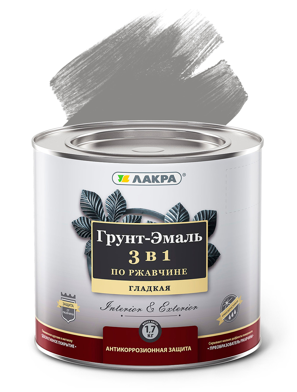 —Грунт-Эмаль 3в1 ЛАКРА Серый 1,7кг