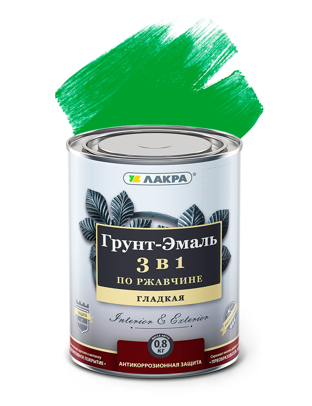 —Грунт-Эмаль 3в1 ЛАКРА Зеленый 0,8кг