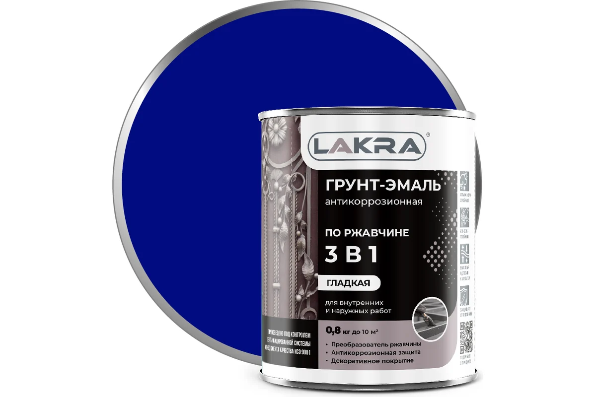 Грунт-Эмаль 3в1 ЛАКРА сигнально-синий 0,8кг