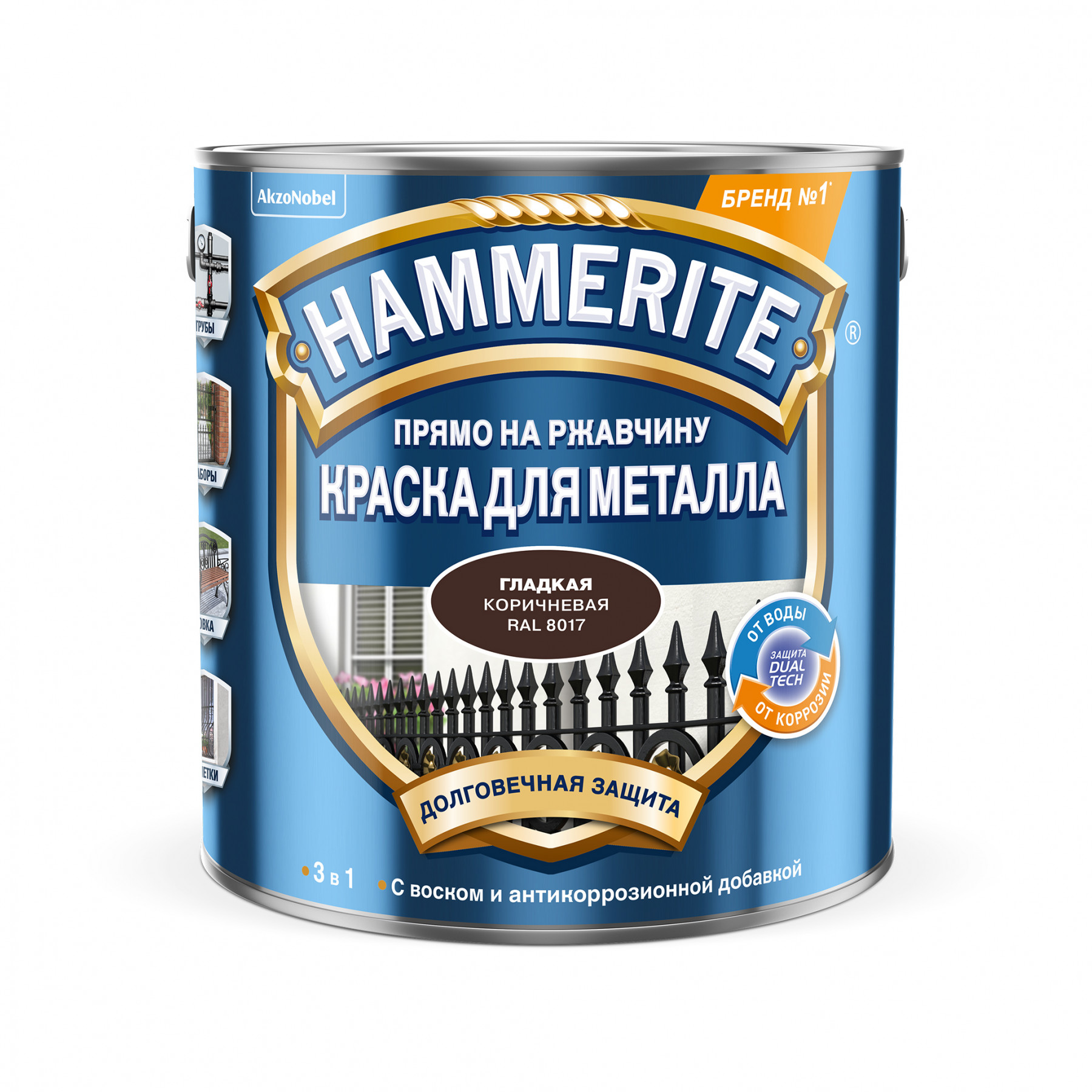 —Краска по ржавчине Hammerite гладкая Коричневая RAL 8017 2л