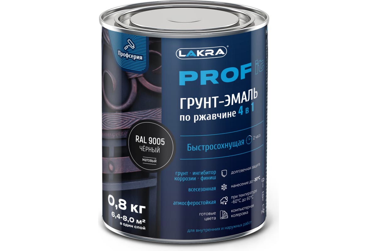 Грунт-Эмаль 4в1 ЛАКРА Чёрный 0,8кг