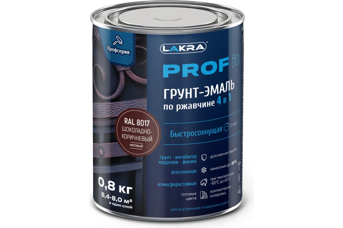 —Грунт-Эмаль 4в1 ЛАКРА Шоколадно-коричневый 0,8кг
