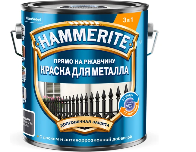 Грунт-эмаль по ржавчине Hammerite — это краска для металла, которая защищает от ржавчины и придает красивый внешний вид поверхности. Она создает прочный барьер, который предотвращает дальнейшее распространение ржавчины и коррозию металла. Покрытие устойчиво к ультрафиолетовым лучам, влаге и перепадам температур, что обеспечивает долгий срок службы. Время высыхания краски составляет всего 4 часа, что позволяет быстро закончить работу и приступить к следующим этапам отделки.