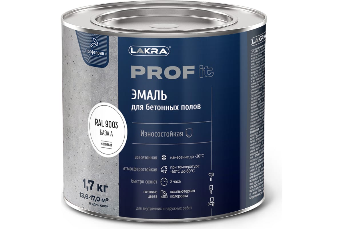 —Эмаль ЛАКРА PROF IT 1,7кг для бетонных полов база А RAL 9003