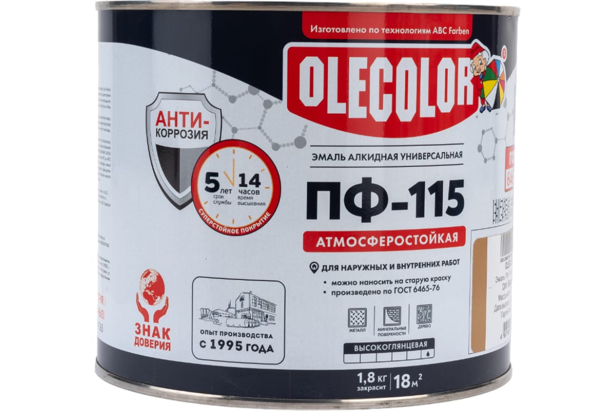 —Эмаль ПФ-115 OLECOLOR 1,8кг бежевый