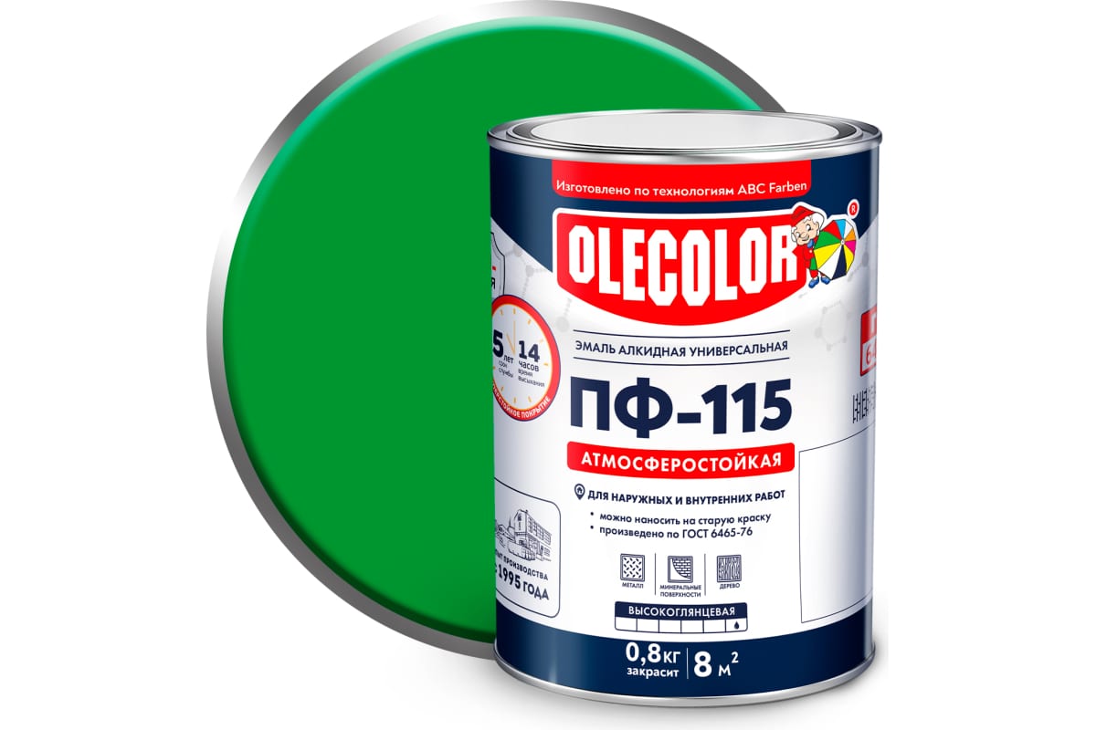 —Эмаль ПФ-115 OLECOLOR 0,8кг зеленое яблоко