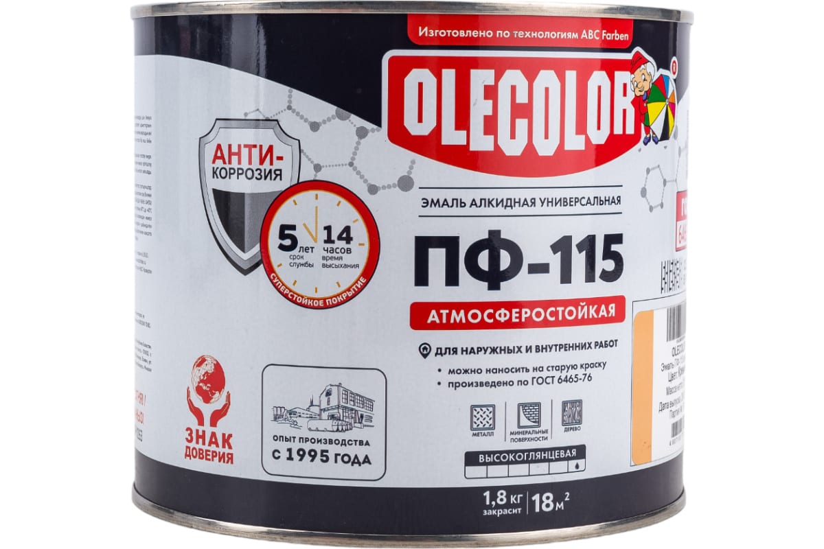 —Эмаль ПФ-115 OLECOLOR 1,8кг кремовый