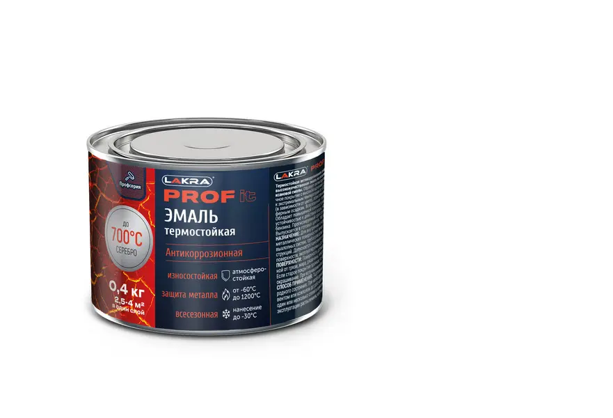 —Эмаль Лакра PROF IT термостойкая серебристый 0,4кг (до 700С)