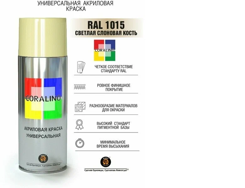 —Краска аэроз. CORALINO универс. св.слоновая кость RAL1015 520мл