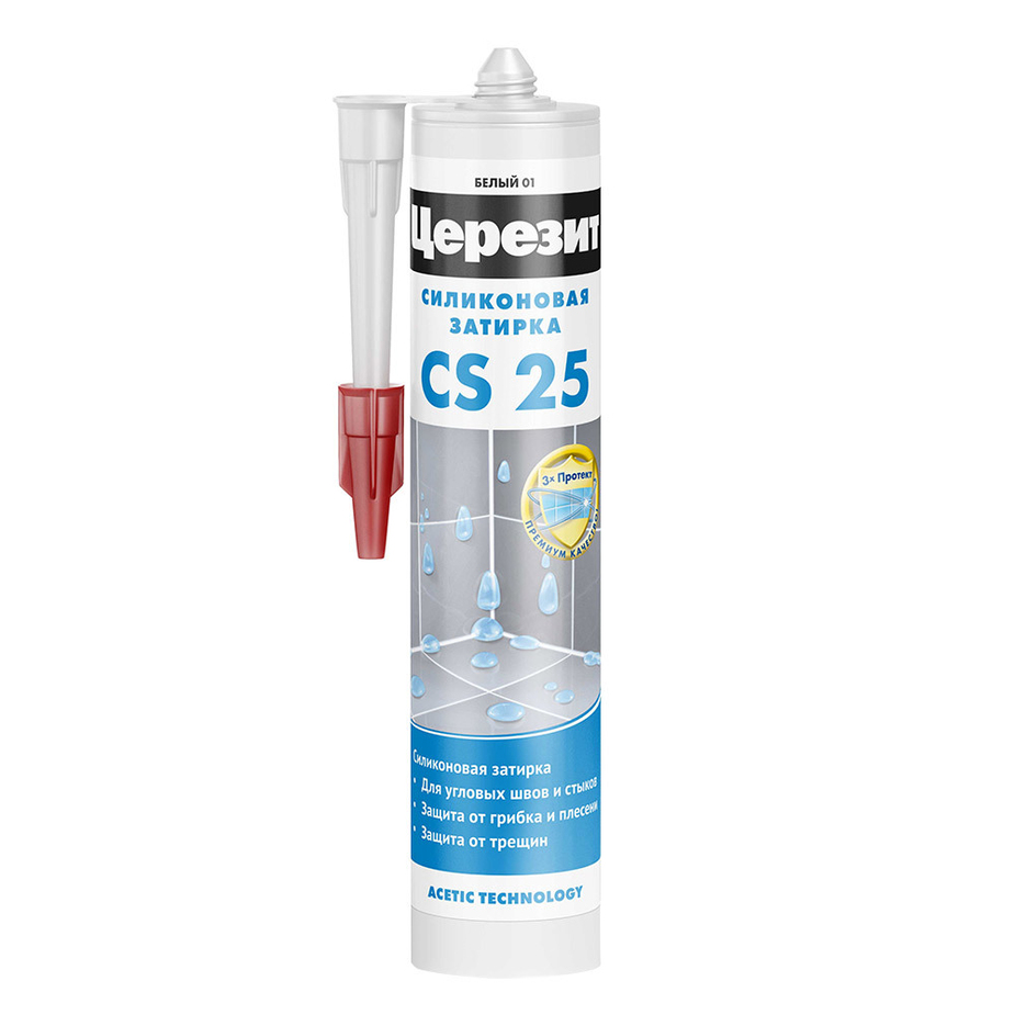 Силиконовая затирка CS 25 предназначена для герметизации угловых, деформационных и примыкающих к санитарно-техническому оборудованию (ваннам, раковинам и др.) швов плиточных облицовок в помещениях с повышенной влажностью: ванных комнатах, душевых, кухнях, туалетах и т.д. Обладает высокой адгезией к эмалированным поверхностям, стеклу, фарфору и фаянсу.