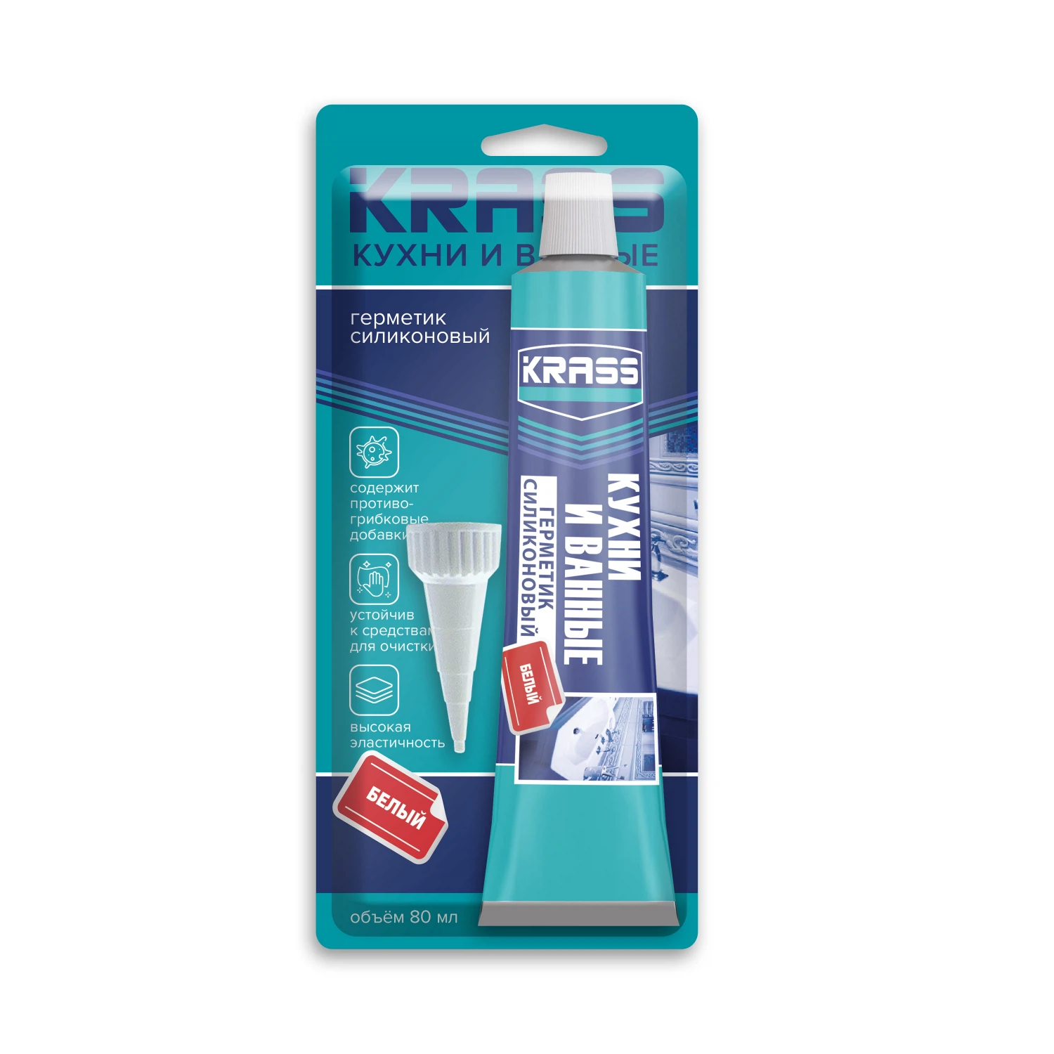 Герметик КРАСС 80мл силиконовый д/кухни и ванны белый