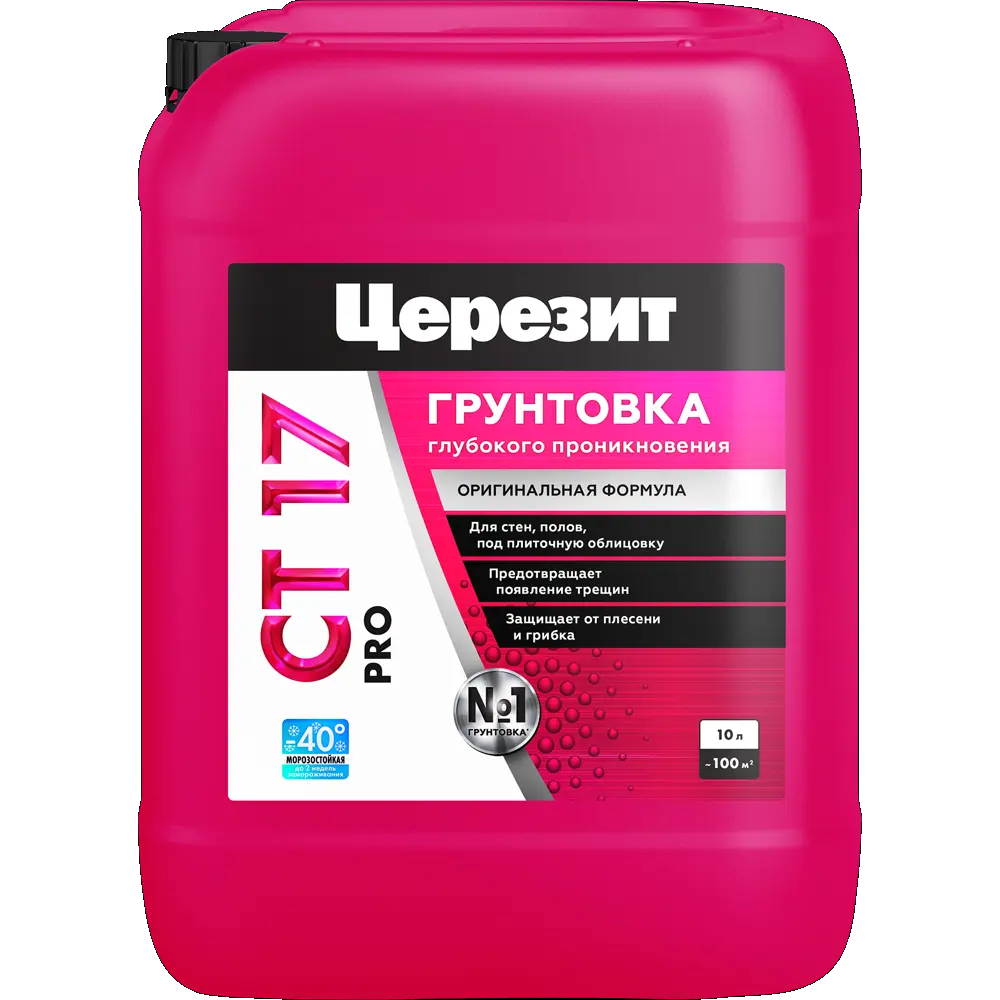 Грунтовка CT 17 предназначена для обработки поверхностей перед нанесением штукатурных и напольных смесей,плиточных клеев и т.д.