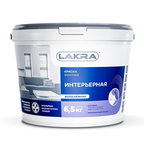 —Краска в/д ЛАКРА 6,5кг интерьерная белая