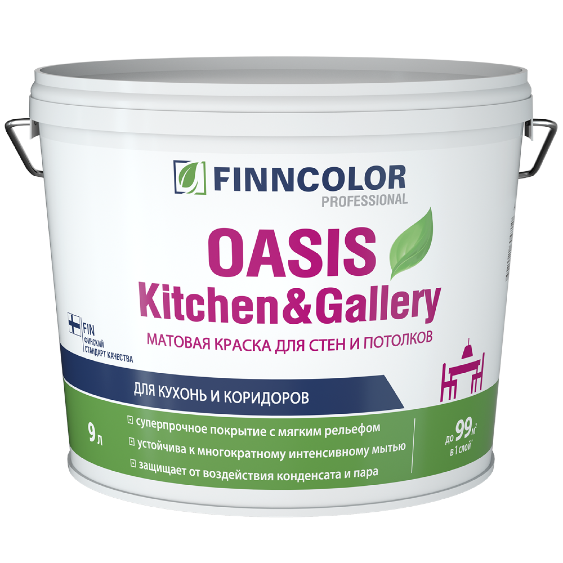 —Краска в/д Finncolor OASIS KITCHEN&GALLERI инт. особо стойкая к мытью 9л