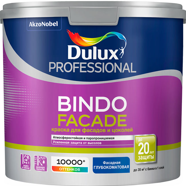 —Краска Dulux BINDO Fasade BW 9л для фасадов и цоколей