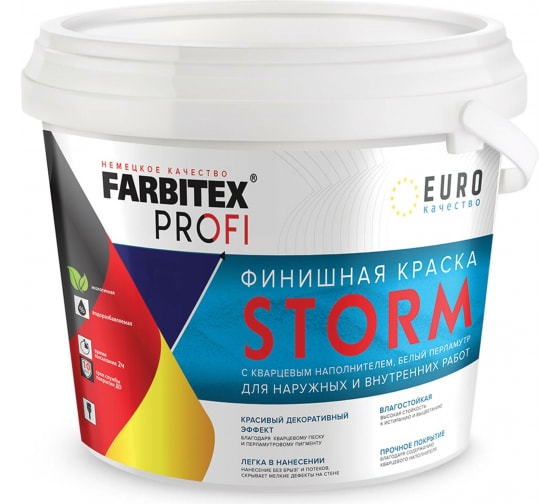 —Краска в/д FARBITEX PROFI Storm финишная белый перламутр 1л