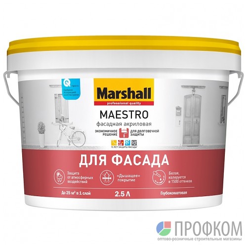 —Краска Marshall MAESTRO Фасадная акриловая BC 2,5л
