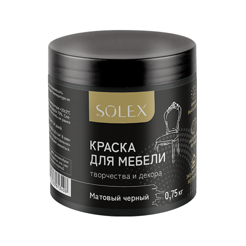 —Краска для мебели и декора SOLEX Черный матовый 0,75кг