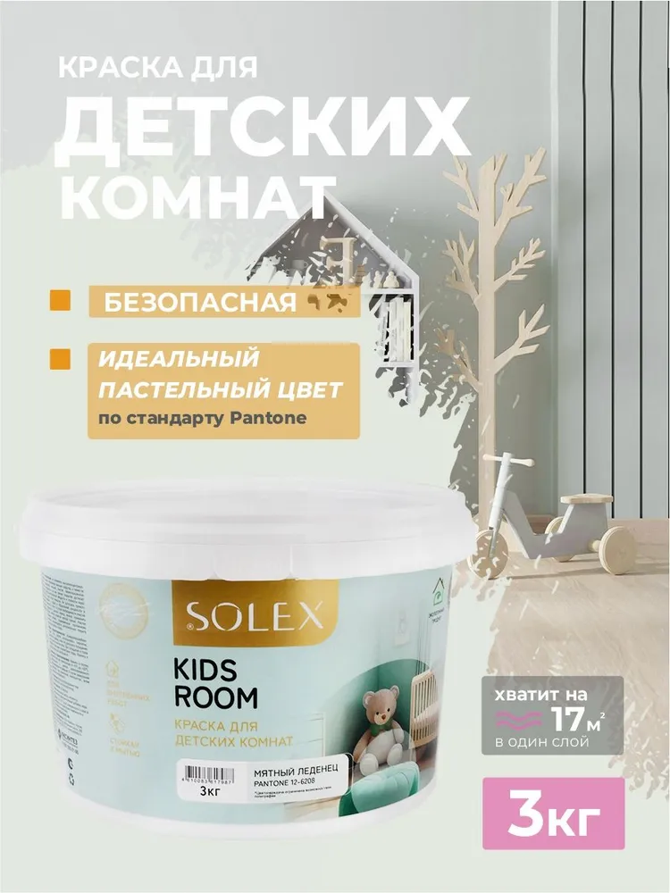 —Краска для детских комнат SOLEX KIDS ROOM цв. Мятный леденец 3кг
