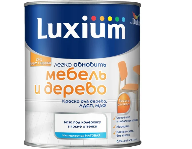 Материал на водной основе, без явного запаха, предназначенный для интерьерных работ. Можно окрашивать как новые поверхности, так и уже имеющие лакокрасочное покрытие. Подходит для следующих материалов и изделий: