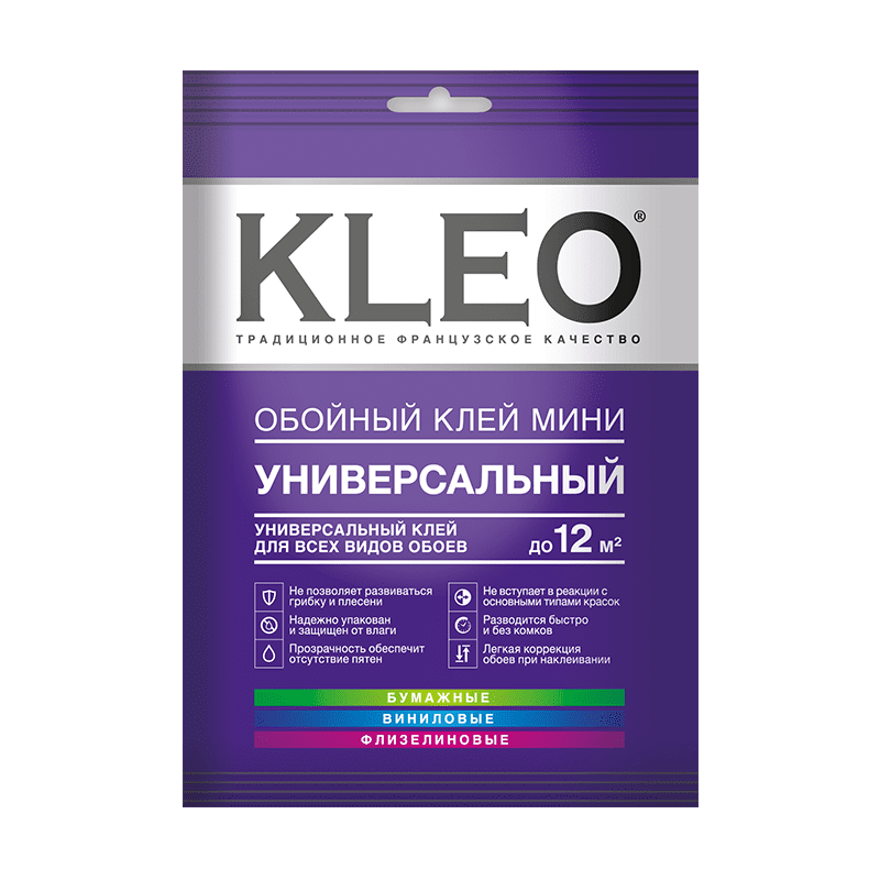 Раствор легко наносится валиком или машинным способ без подтеков и разбрызгивания. Продукт подходит для бумажных, текстильных, моющихся обоев, легких виниловых и на флизелиновой основе, стандартных и под окраску.