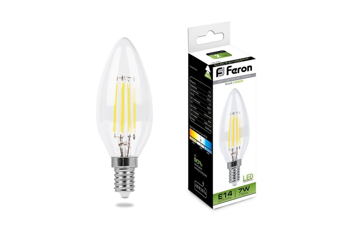 —Лампа светодиодная Feron 7W 230V Е14 4000K LB-66 свеча филамент