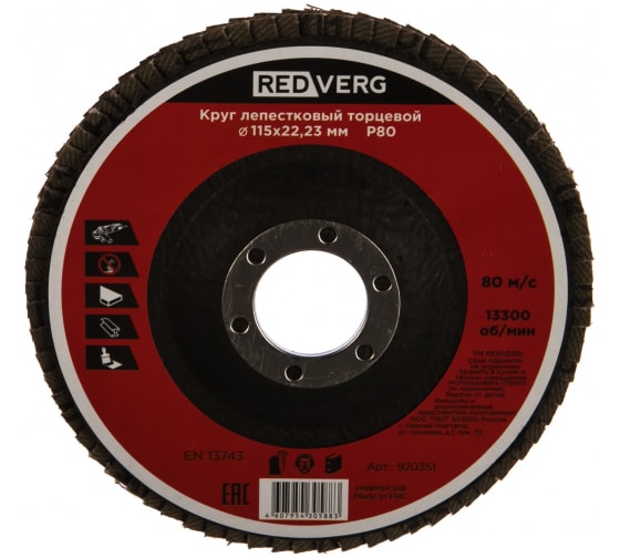 —Круг лепестковый торцевой RedVerg 115*22,23мм P80