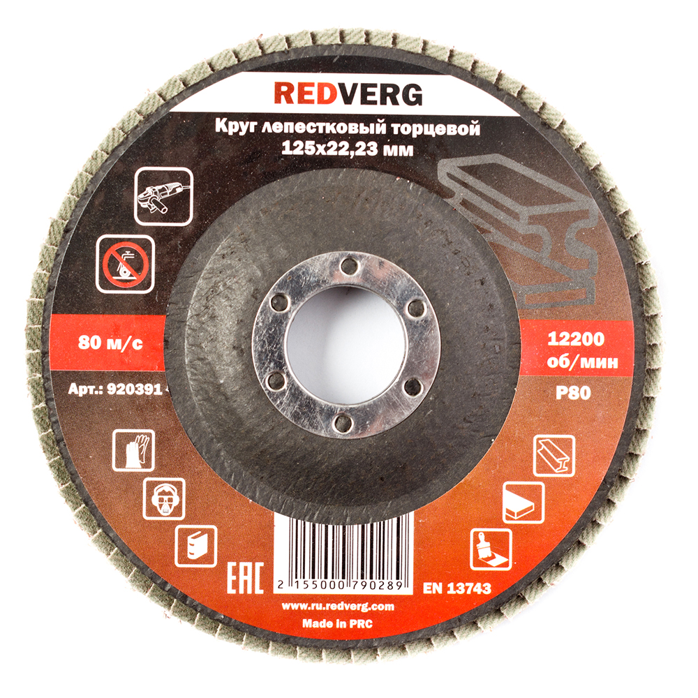Круг лепестковый торцевой RedVerg 125*22,23мм P80