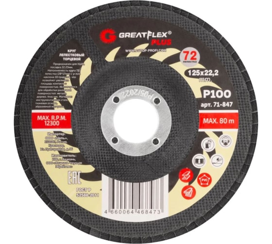 —Круг лепестковый торцевой Greatflex Plus 125*22,2мм P100