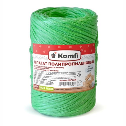 Прочный шпагат, устойчивый к влиянию агрессивной среды (к растворителям, щелочам и кислотам, влажности и т.п.), не боится влаги, не повержен гниению. Используется для упаковки и обвязки товаров, для декоративных работ.