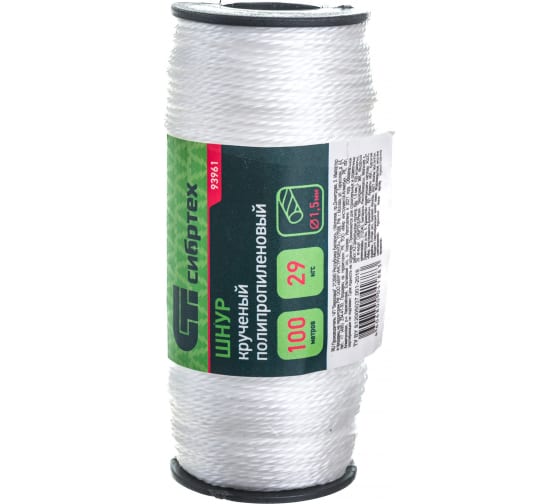 —Шнур Сибртех кручёный полипропиленовый 1,5мм, (L 100м)