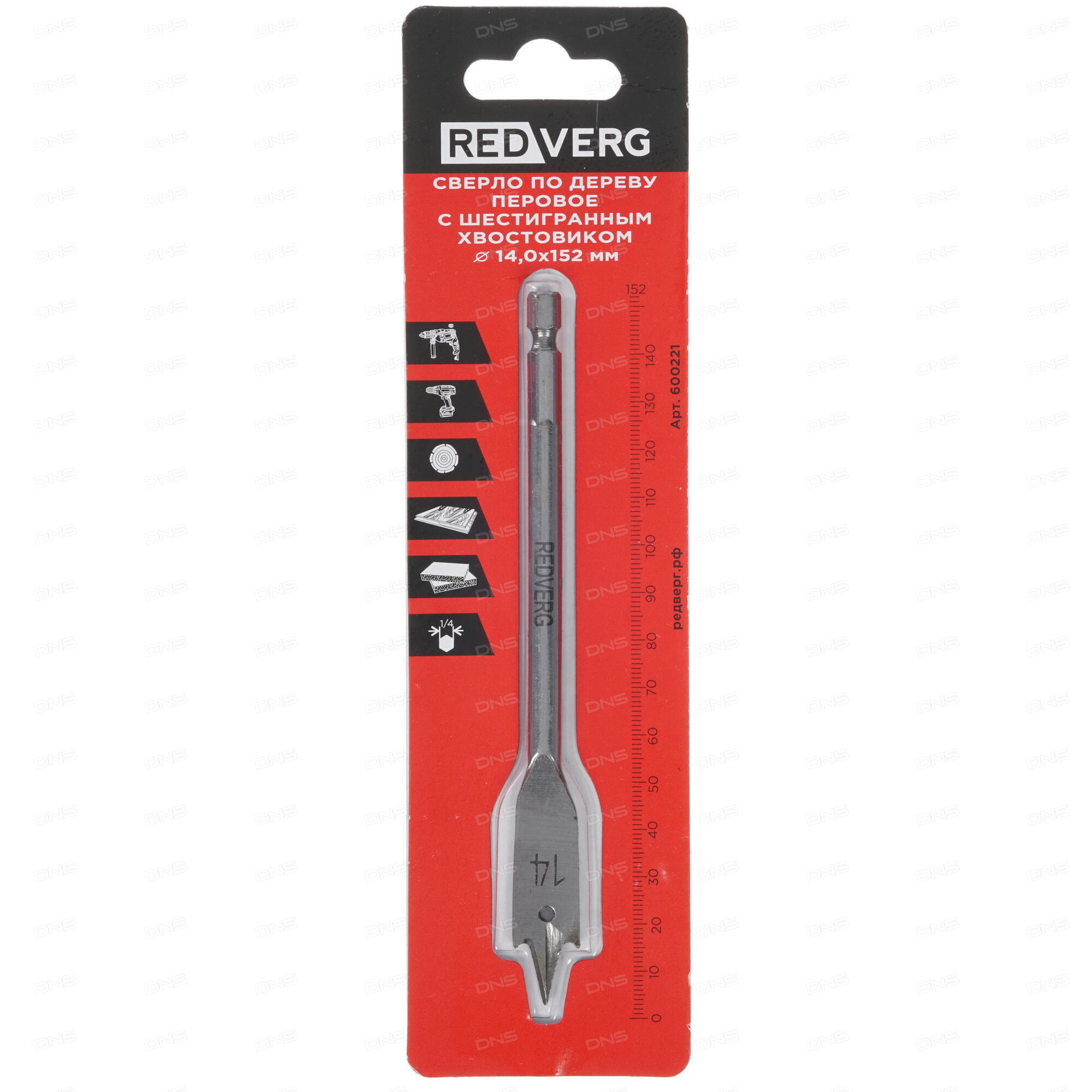 Сверло RedVerg HCS 14 600221 использует в своей основе качественную углеродистую сталь твердостью 45-48 HRC, благодаря чему данная модель отличается высокой прочностью и надежностью, позволяя работать на протяжении длительного времени без риска деформации. Инструмент может использоваться с аккумуляторными и сетевыми дрелями и шуруповертами — для установки используется шестигранный хвостовик.