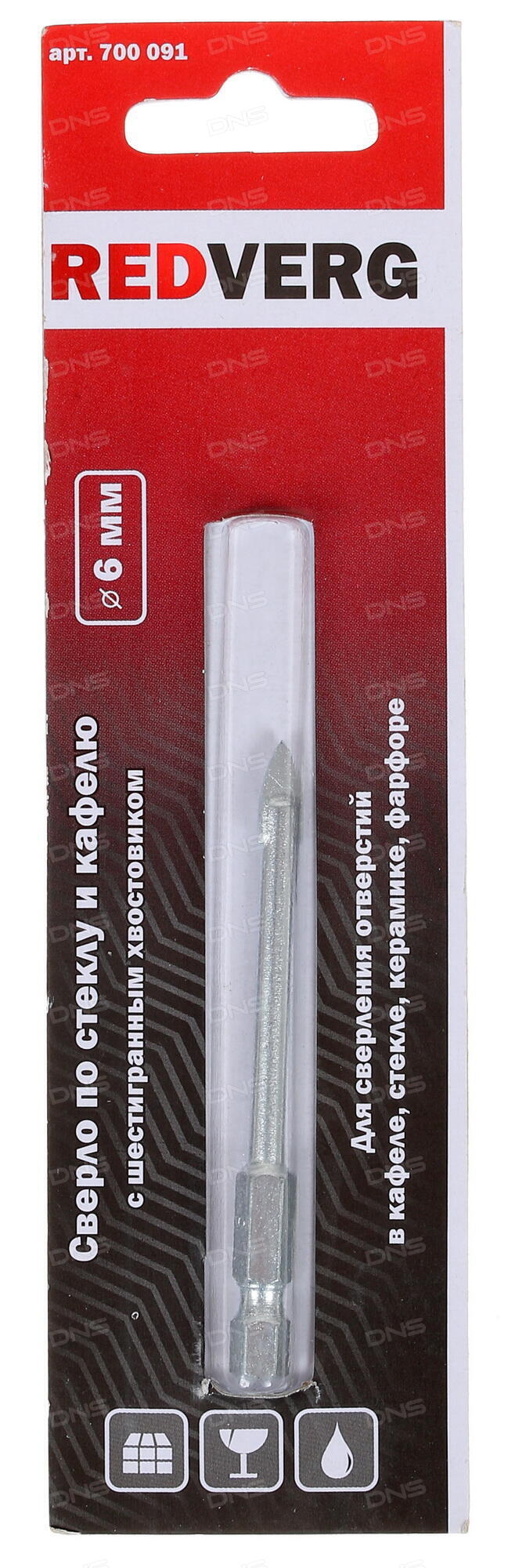 Сверло RedVerg 700091 характеризуется диаметром, равным 6 мм. При работе рекомендуется частота вращения от 700 до 1200 оборотов в минуту.