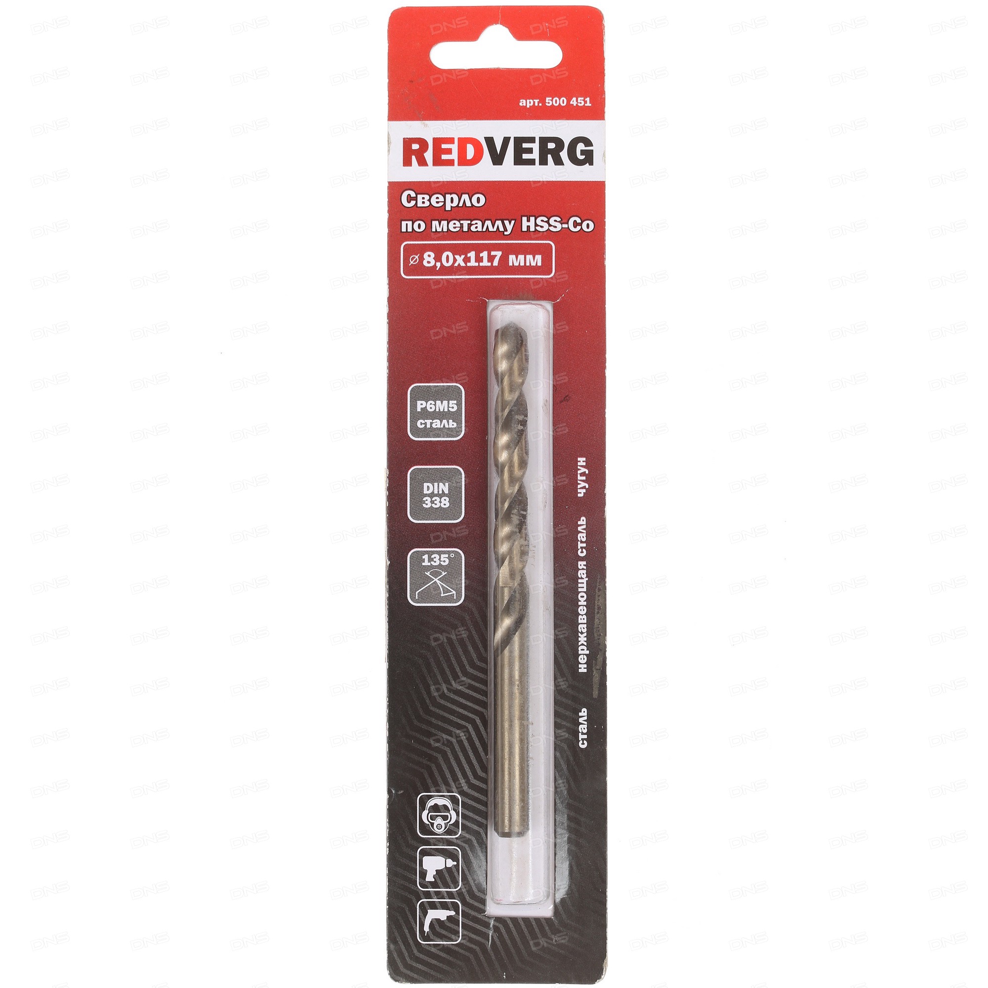 Сверло RedVerg HSS-Со 500451 имеет традиционную, спиральную конструкцию. В наличии цилиндрический хвостовик. Диаметр сверла значителен: величина этого показателя равна 8 мм. Длина инструмента составляет 117 мм. Рабочая длина равна 75 мм.